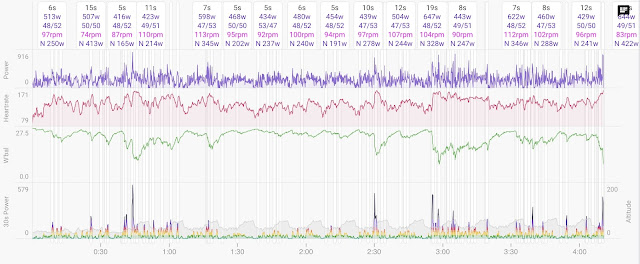 Kisan kesto oli 4h 10min, (vapaa)keskivauhti 44,1kmh. AP 214w ja NP 259w. Keskikadenssi 89.